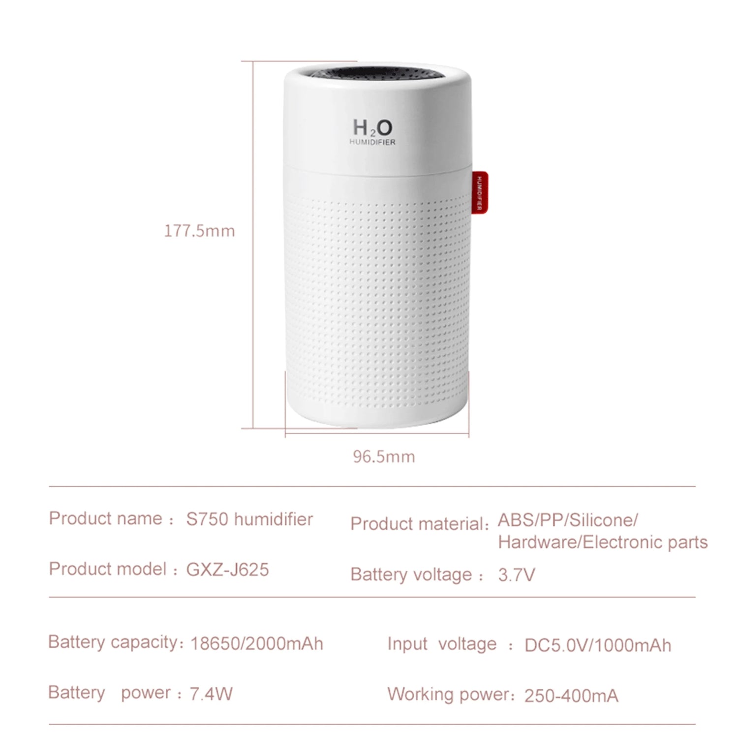 750Ml Cool Mist Ultrasonic Humidifier for Large Room, 7 Color LED Light