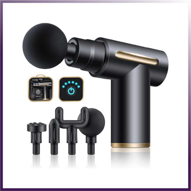 The ultimate tool for targeted muscle relief and recovery. Designed with powerful percussion technology, the massage gun delivers deep tissue massages to alleviate soreness, reduce tension, and enhance blood flow. Perfect for athletes, fitness enthusiasts, or anyone looking to unwind after a long day, it features multiple speed settings, interchangeable heads for various muscle groups, and a lightweight, ergonomic design for easy use. Whether it's post-workout recovery or daily relaxation, the massage gun is your go-to companion for improved mobility and stress relief.